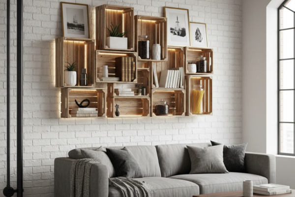 DIY funcional: criando prateleiras modernas com caixotes reutilizados